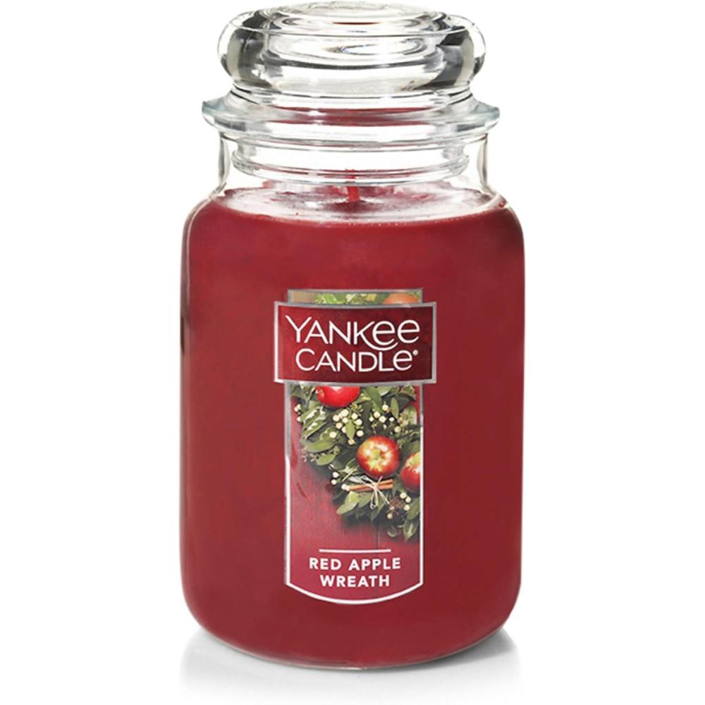 Yankee Candle Apple Wreath Scented Classic 22oz Large Jar Single Wick Candle Over 110 Hours of Burn Time | Holiday Gifts for All(Red Apple Wreath)