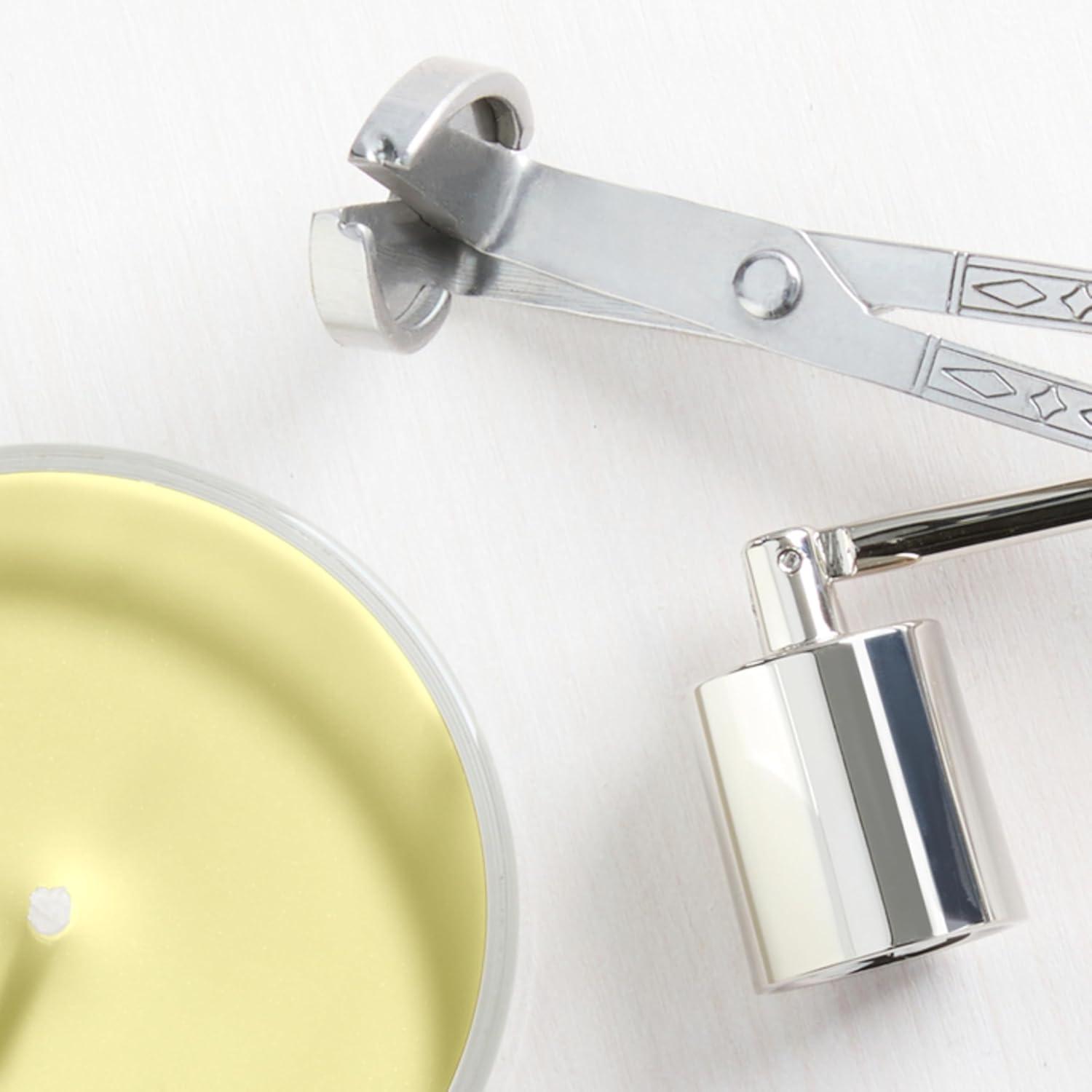 Decorative metal lid protects wax from dust and debris between burns