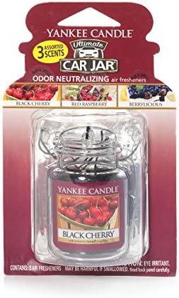 Yankee Candle Car Air Fresheners, Hanging Car Jar® Ultimate 3-Pack, Neutralizes Odors Up to 30 Days, Includes: 1 Berrylicious, 1 Black Cherry, and 1 Red Raspberry