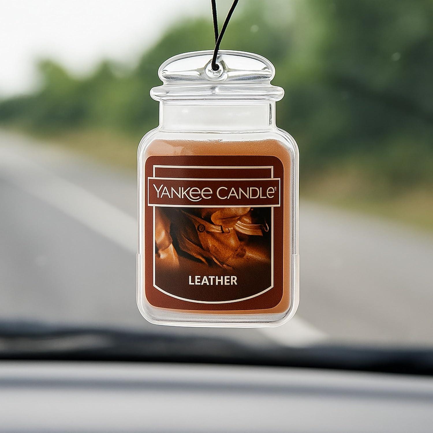Yankee Candle Car Air Fresheners, Hanging Car Jar® Ultimate Black Cherry Scented, Neutralizes Odors Up To 30 Days(Leather)