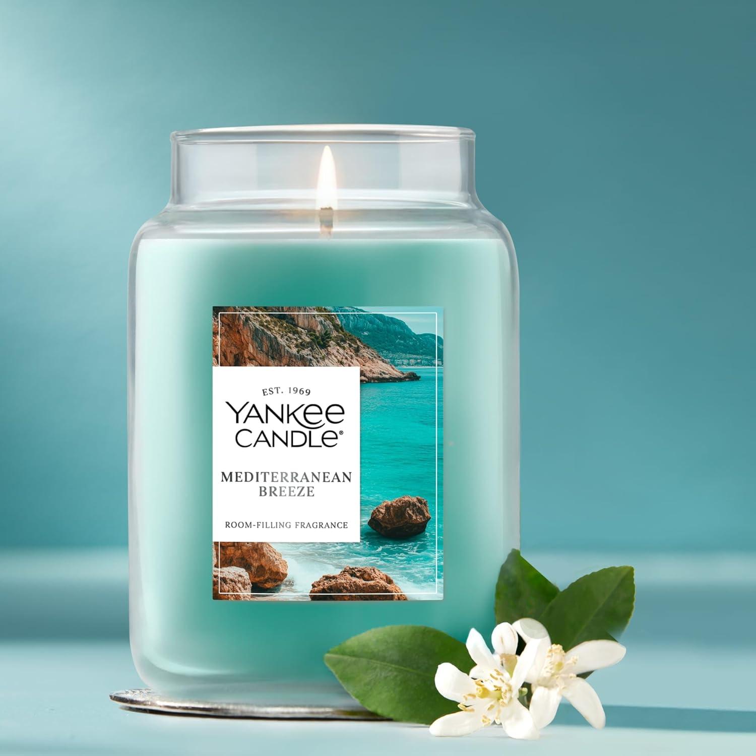 Yankee Candle Clean Cotton, Scented Candle, 22oz Large Jar with up to 150 Hour Burn Time, Giftable, Birthdays(Mediterranean Breeze)
