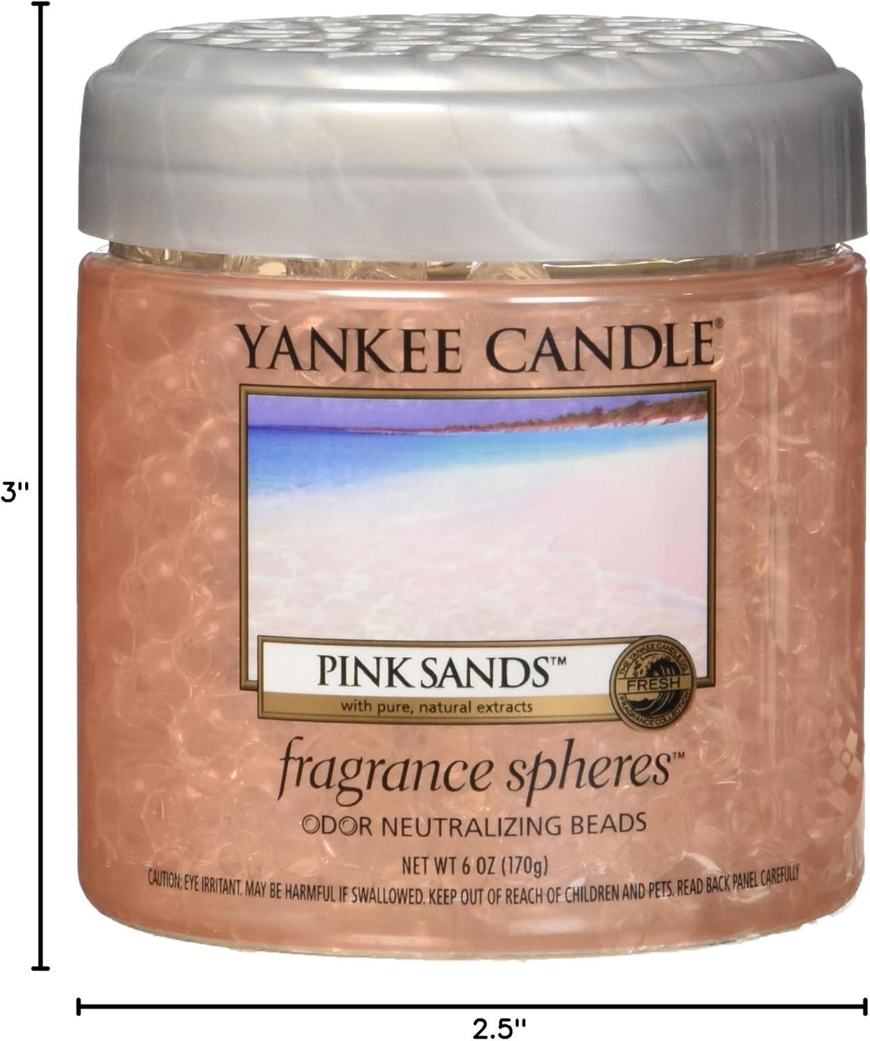 Pink Sands It's an exotic island escape in the beautiful mix of bright citrus, sweet florals and spicy vanilla. Use Yankee Candle Fragrance SpheresTM beads to neutralize odors and leave behind the Yankee Candle fragrance you have grown to love. Fragrance SpheresTM beads are perfect for use in the laundry room, bathroom, or any room where a candle is not convenient