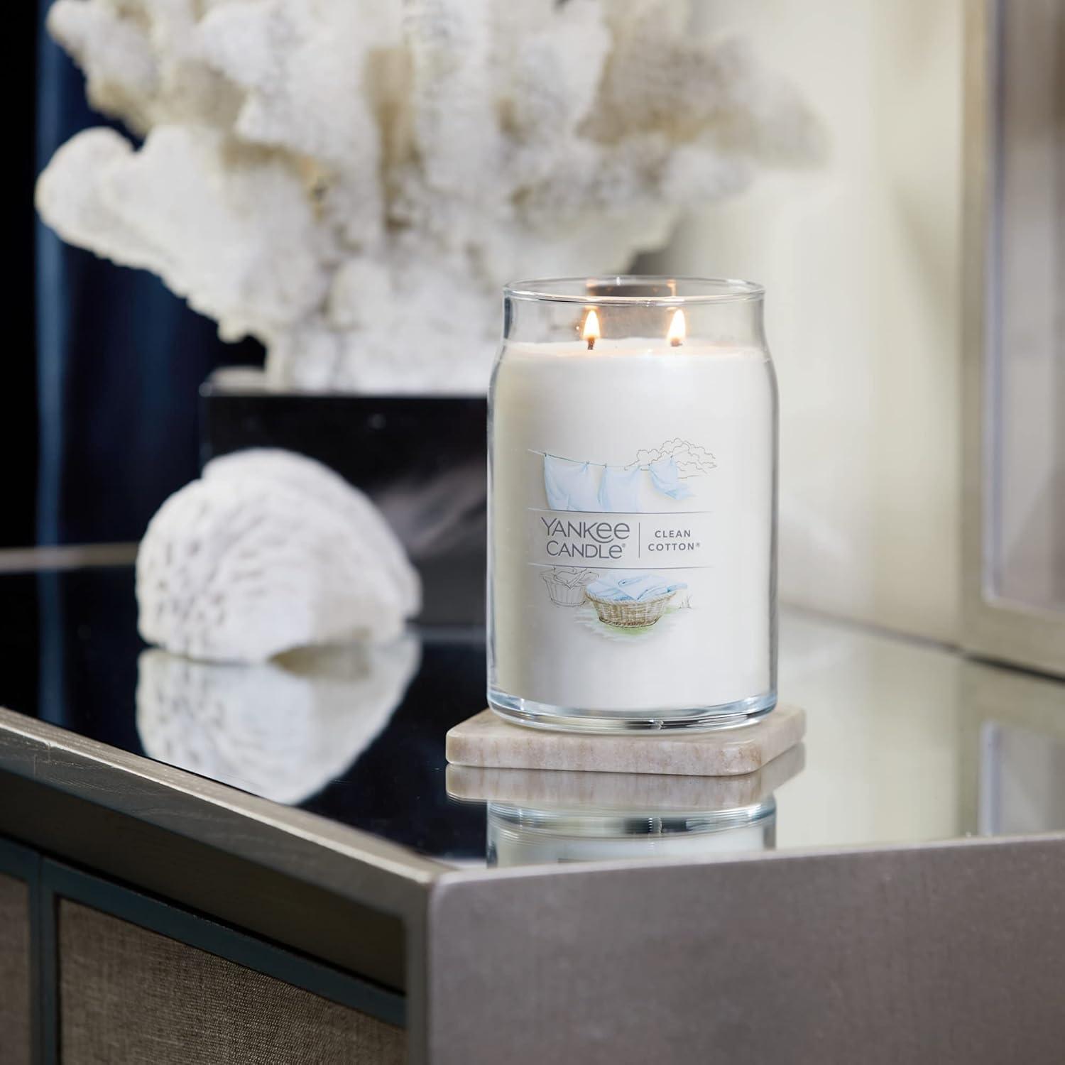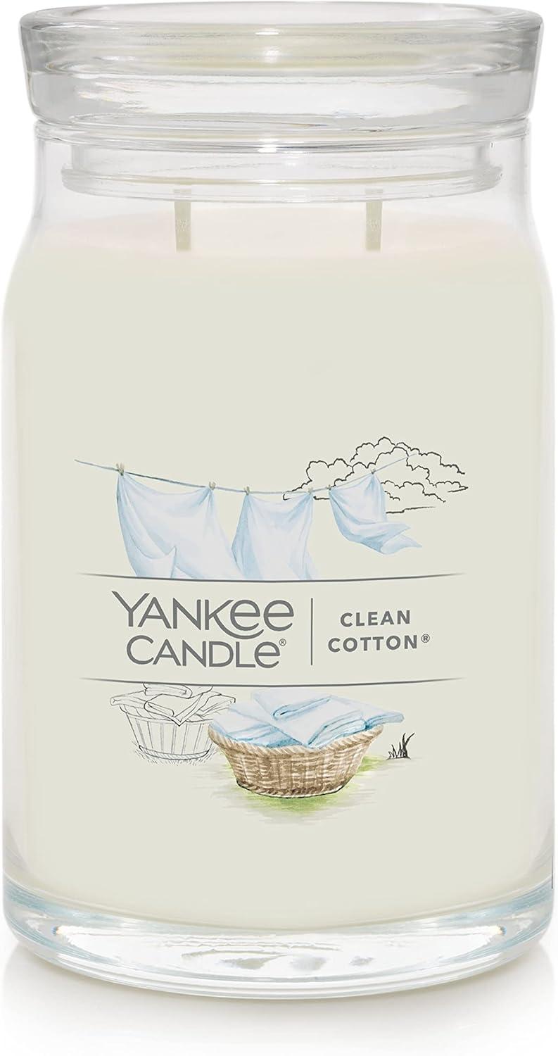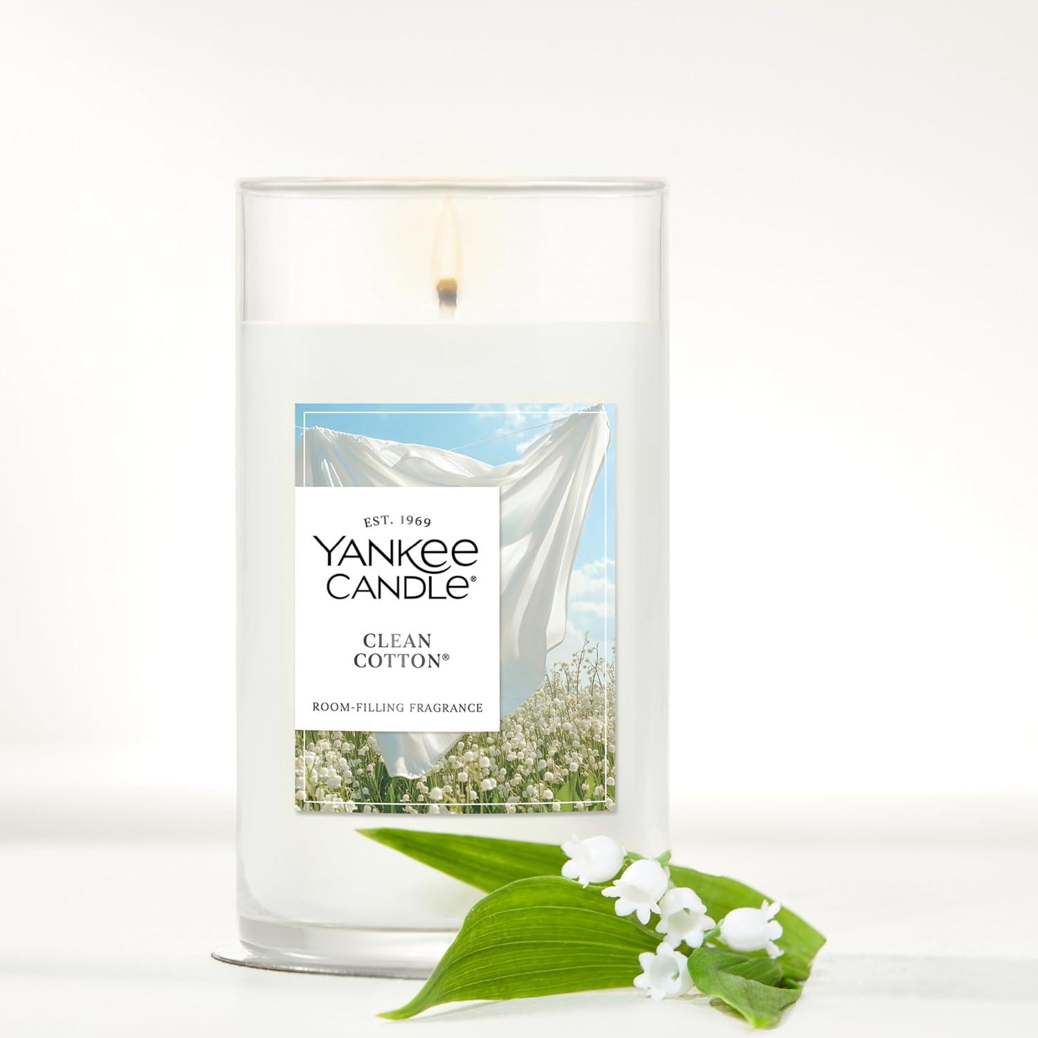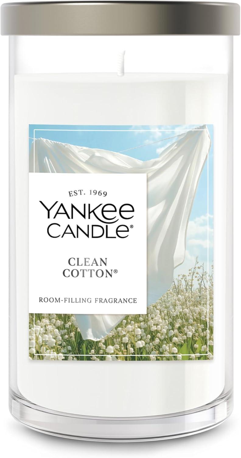 Yankee Candle Large Tumbler Scented Candle with up to 80 Hour Burn Time, Premium Plant Wax Blend for Consistent Burn, 20 oz Tumbler Candle with Room Filling Fragrance, Bayside Cedar(Clean Cotton)