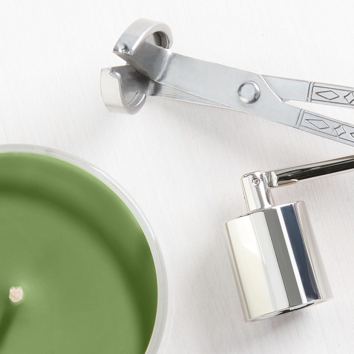 Brushed silver-tone lid protects wax from dust and debris in between burns