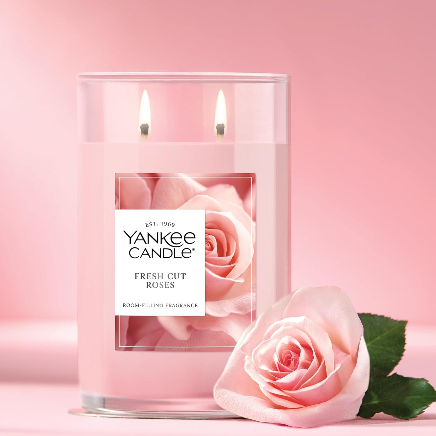 Yankee Candle Large Tumbler Scented Candle with up to 80 Hour Burn Time, Premium Plant Wax Blend for Consistent Burn, 20 oz Tumbler Candle with Room Filling Fragrance, Fresh Cut Roses(Fresh Cut Roses)
