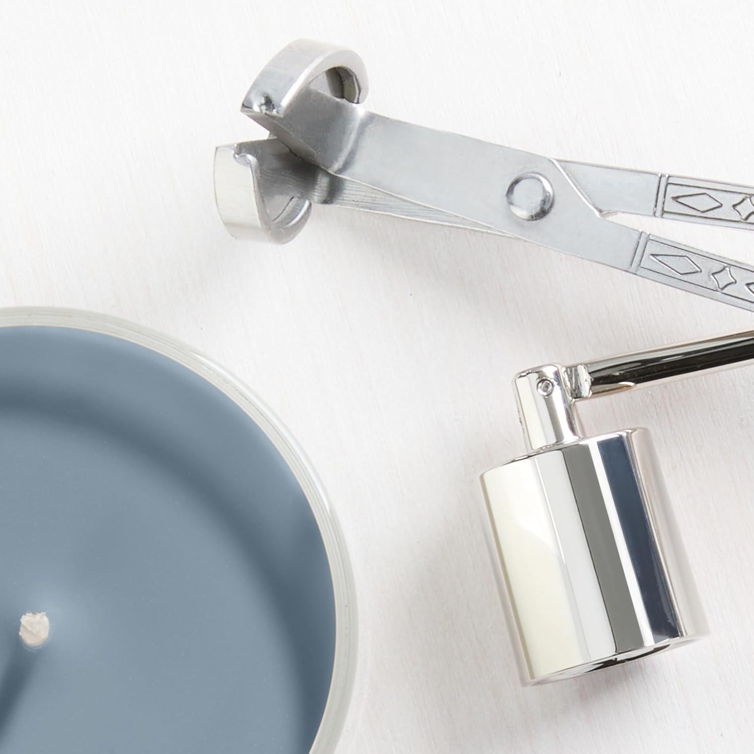 Brushed silver-tone lid protects wax from dust and debris in between burns