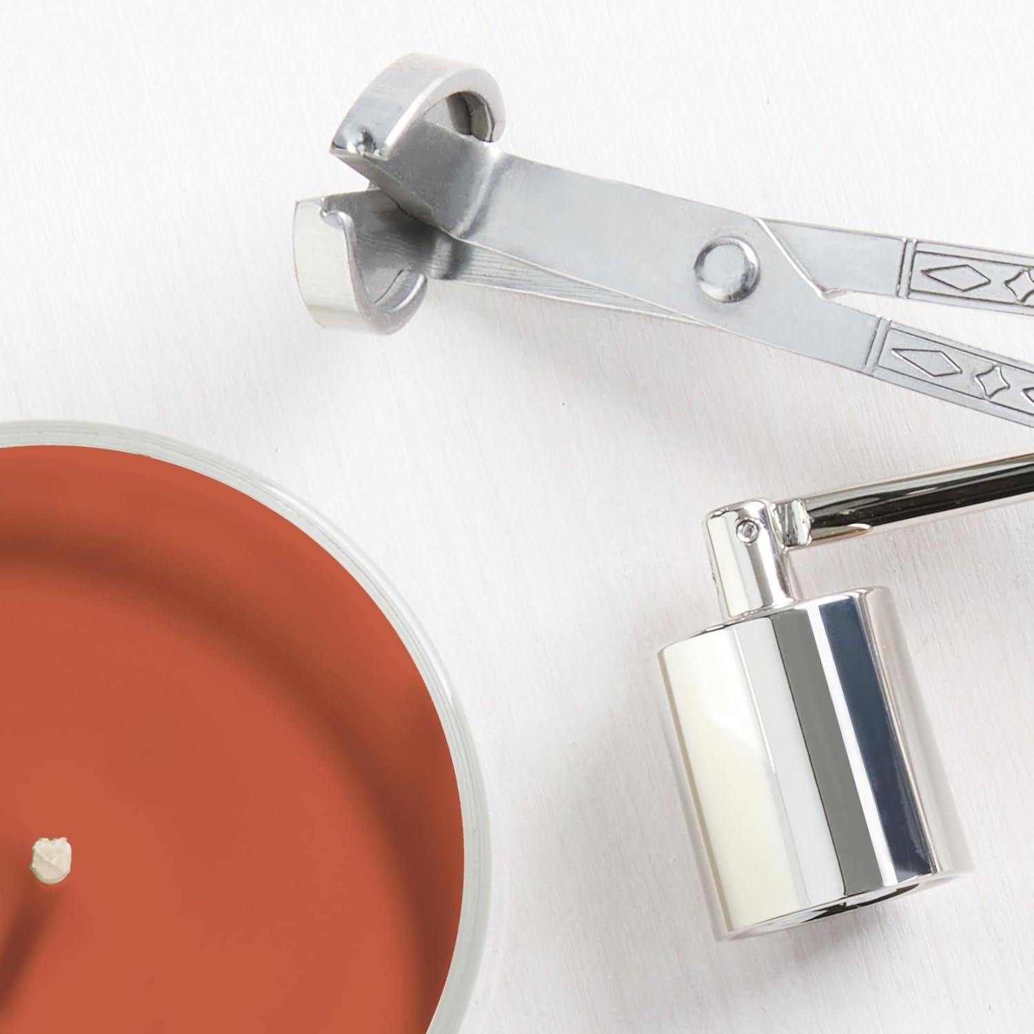 Brushed silver-tone lid protects wax from dust and debris in between burns