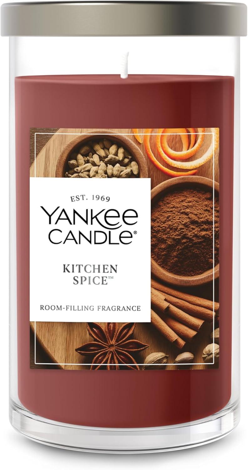 Yankee Candle Medium Pillar Scented Candle with up to 115 Hour Burn Time, Premium Plant Wax Blend for Consistent Burn, 14.25 oz Pillar Candle with Room Filling Fragrance, Pumpkin Banana Scone(Kitchen Spice)