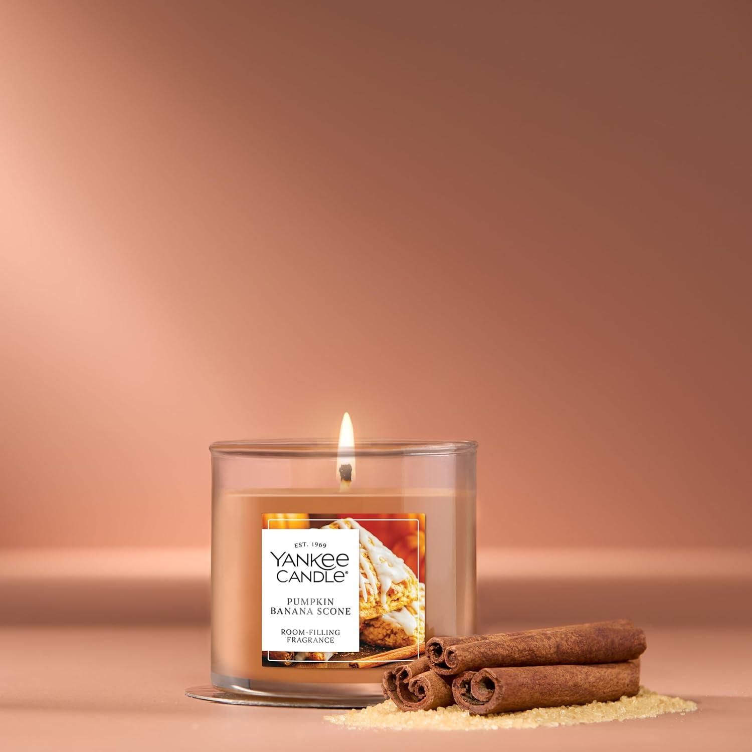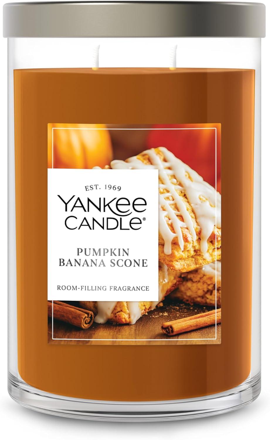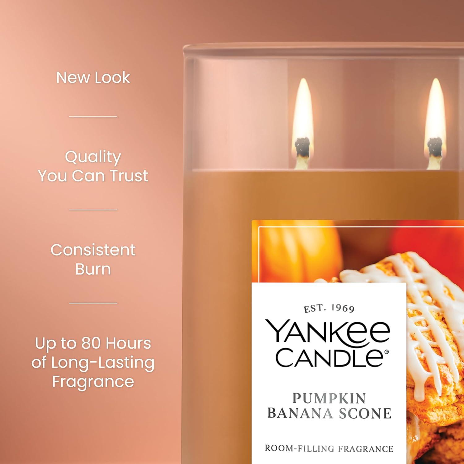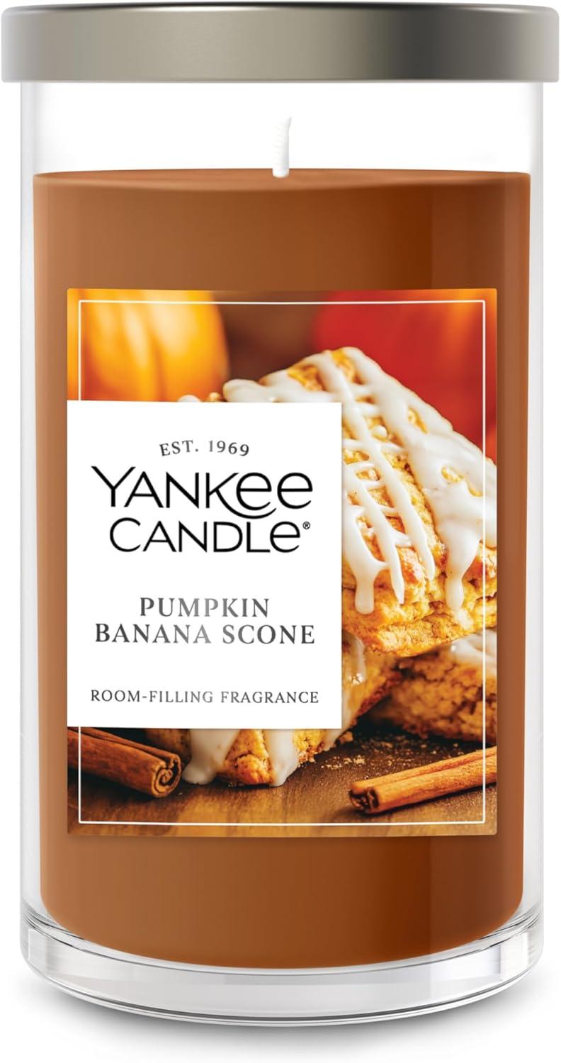 Yankee Candle Medium Pillar Scented Candle with up to 115 Hour Burn Time, Premium Plant Wax Blend for Consistent Burn, 14.25 oz Pillar Candle with Room Filling Fragrance, Pumpkin Banana Scone(Pumpkin Banana Scone)