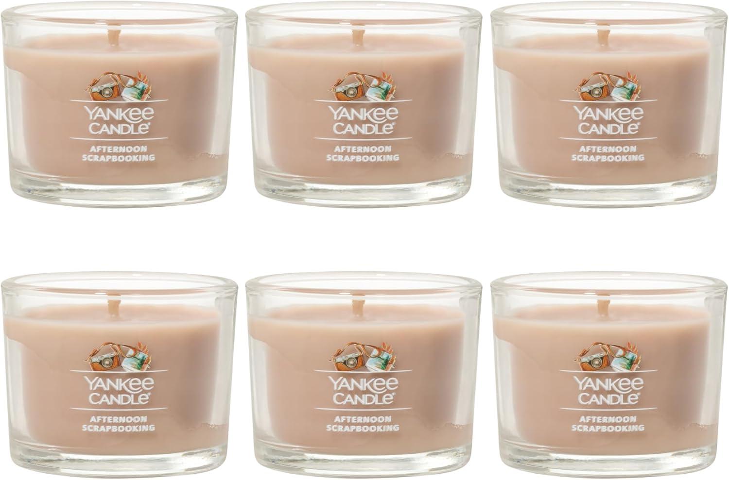 Yankee Candle Signature Votive Mini Candle Jar, Balsam & Cedar Scent, Natural Soy Wax Blend Candle with Natural Fiber Wick, 1.3 OZ Glass Jar (Pack of 4)(Afternoon Scrapbooking)