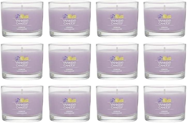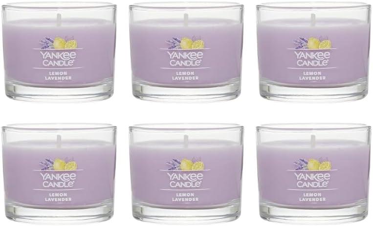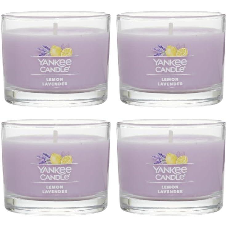 Yankee Candle Signature Votive Mini Candle Jar, Coconut Beach Scent, Natural Soy Wax Blend Candle with Natural Fiber Wick, 1.3 OZ Glass Jar (Pack of 4)(Lemon Lavender)