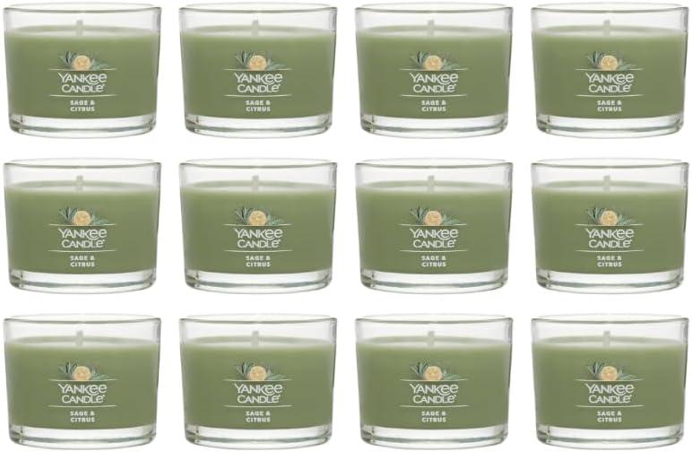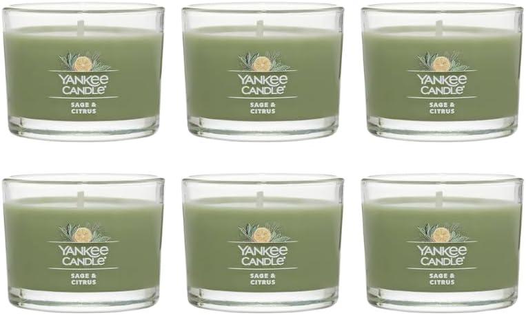 Yankee Candle Signature Votive Mini Candle Jar, Coconut Beach Scent, Natural Soy Wax Blend Candle with Natural Fiber Wick, 1.3 OZ Glass Jar (Pack of 4)(Sage & Citrus)