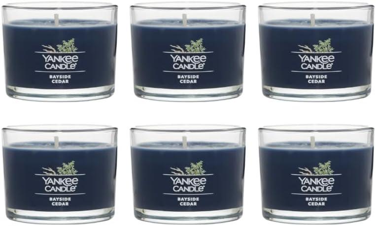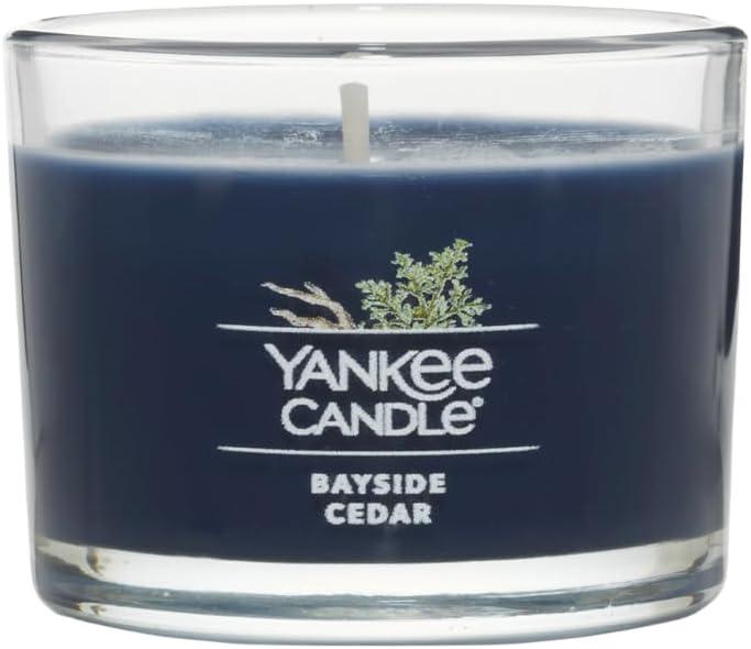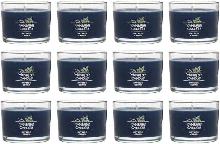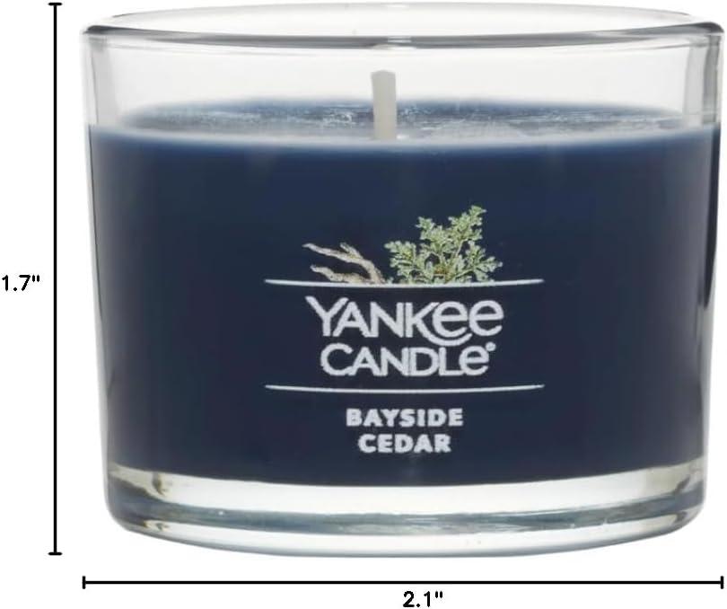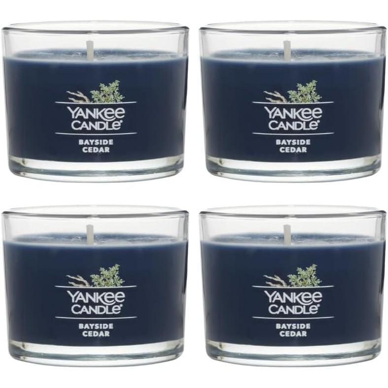 Yankee Candle Signature Votive Mini Candle Jar, Midsummer’s Night Scent, Natural Soy Wax Blend Candle with Natural Fiber Wick, 1.3 OZ Glass Jar (Pack of 4)(Bayside Cedar)
