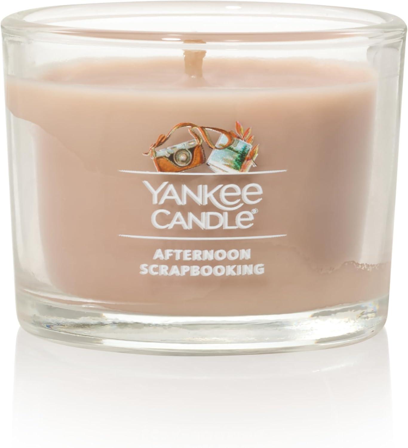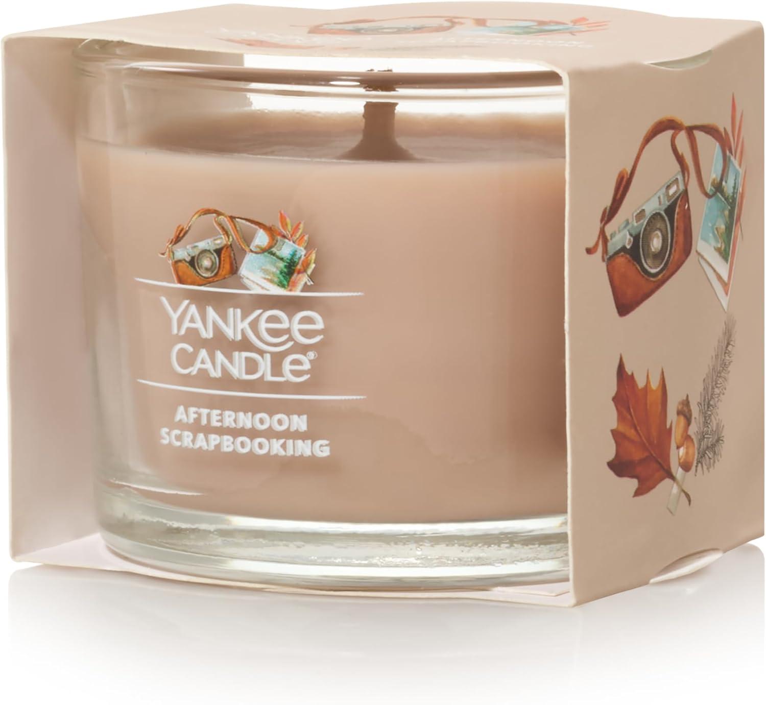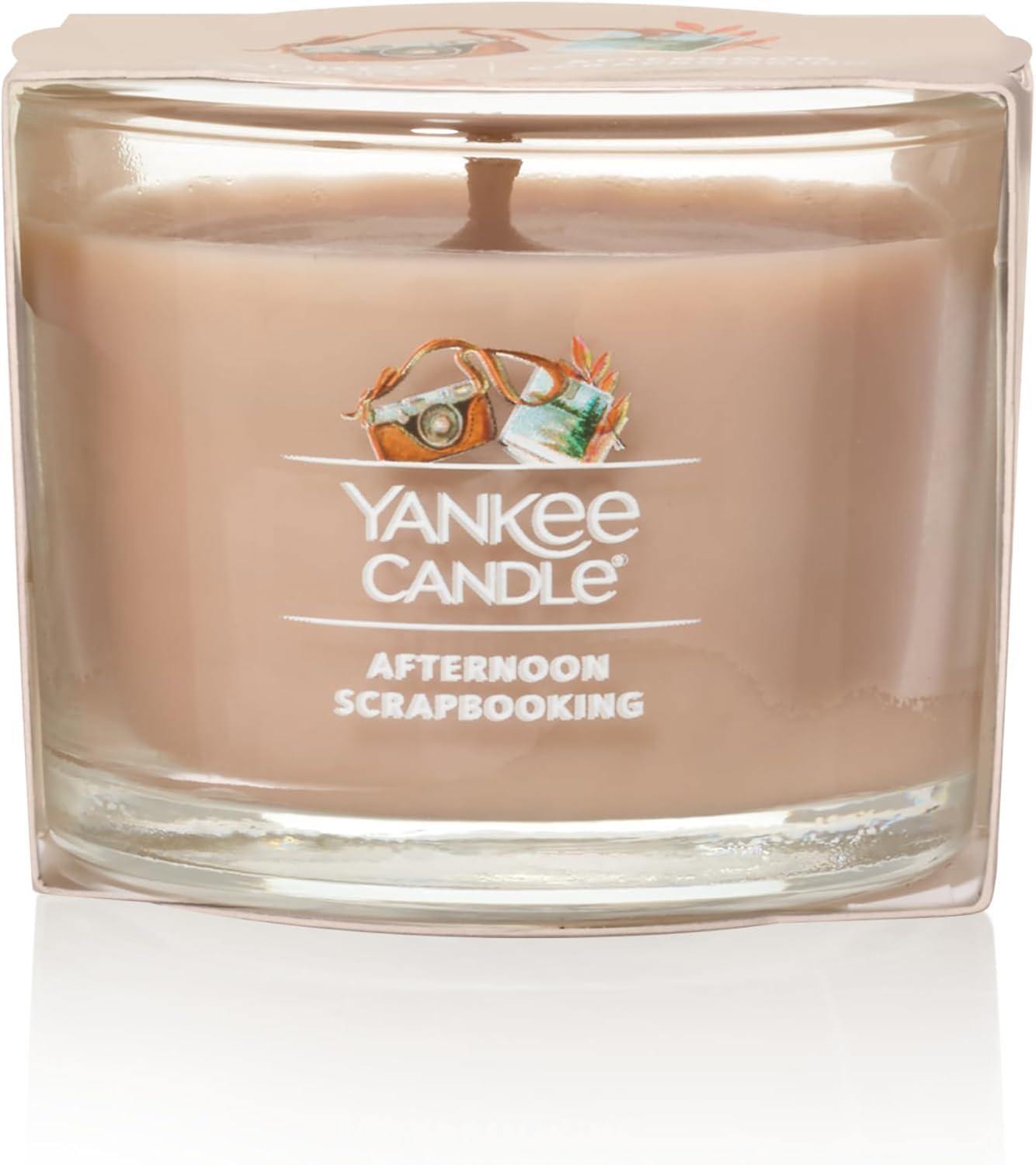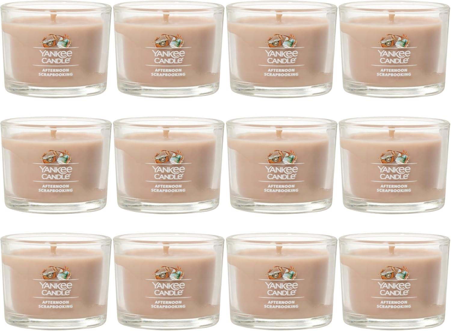 Yankee Candle Signature Votive Mini Candle Jar, Snow Globe Wonderland Scent, Natural Soy Wax Blend Candle with Natural Fiber Wick, 1.3 OZ Glass Jar (Pack of 4)(Afternoon Scrapbooking)