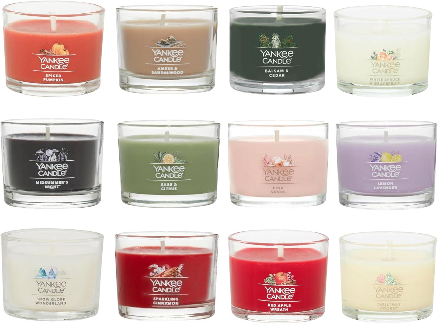 Yankee Candle Signature Votive Mini Jars 12 Days of Christmas Candle Advent Calendar Variety Pack, Natural Soy Wax Blend with Natural Fiber Wick, 1.3 OZ Glass Jar (Pack of 12)(Holiday 2024)