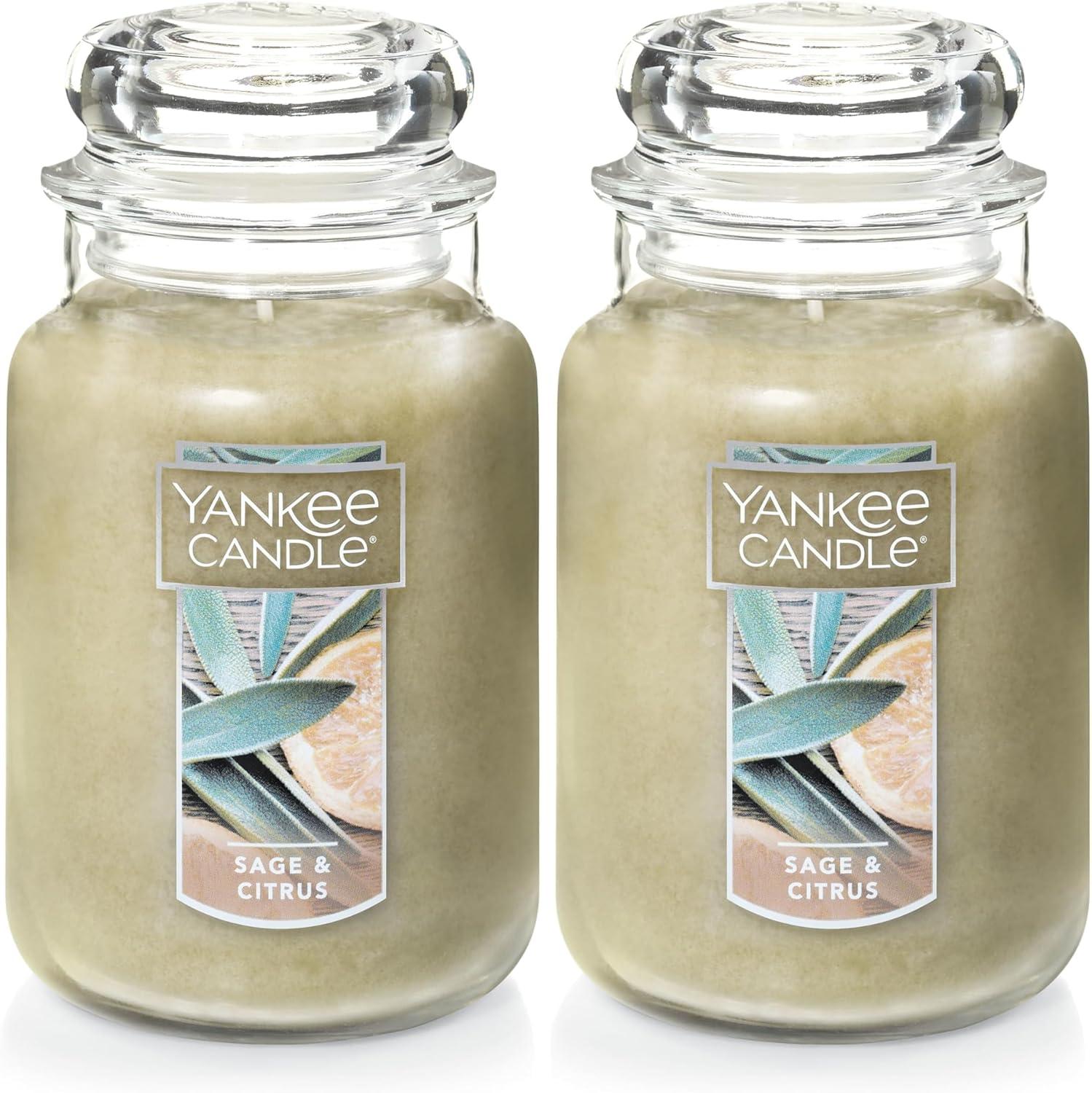 Yankee Candle Sun & Sand Scented, Classic 22oz Large Jar Single Wick Candle, Over 110 Hours of Burn Time(Sage & Citrus)